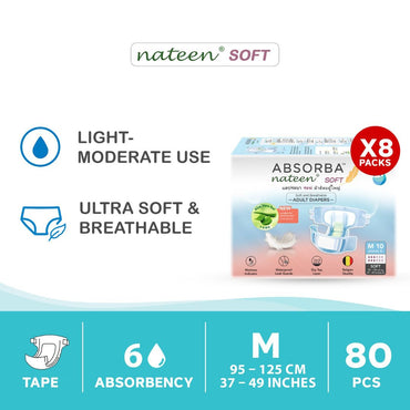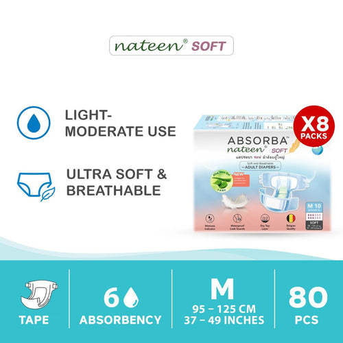 Gentle Care. Comfortable Fit. Reliable Protection. Comfortable Protection for Everyday Use ABSORBA Nateen Soft Adult Diapers are designed for light to moderate incontinence, providing soft, breathable,...