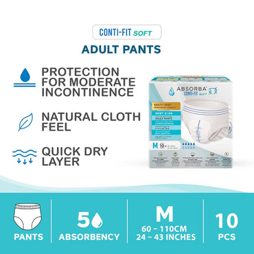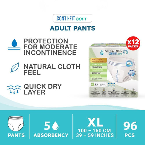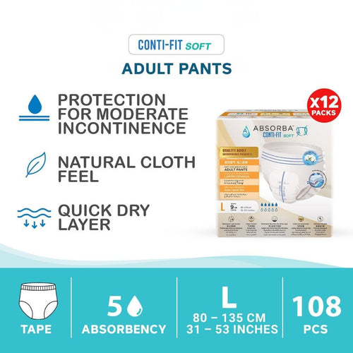 Soft. Breathable. Comfortable Protection for Everyday Confidence. Gentle, Reliable Care for Active & Semi-Mobile Users Absorba ContiFit Soft Adult Diapers are designed for light to moderate...