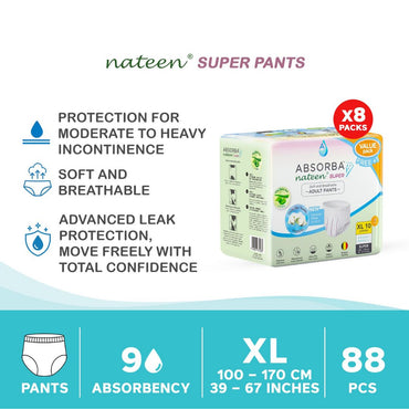 Heavy-Duty Protection. Comfortable Fit. Confidence All Day. Reliable Protection for Heavy Incontinence Nateen Super (XL) Pull-Up Pants are designed for heavy to very heavy incontinence, providing...
