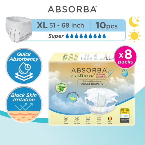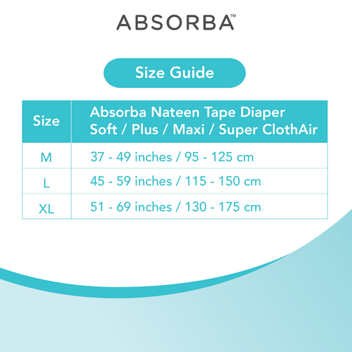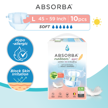 Absorba Nateen Soft Cloth air is an adult diaper with high absorbency. The Diaper has excellent odor control and an Ultra top layer to optimize comfort....