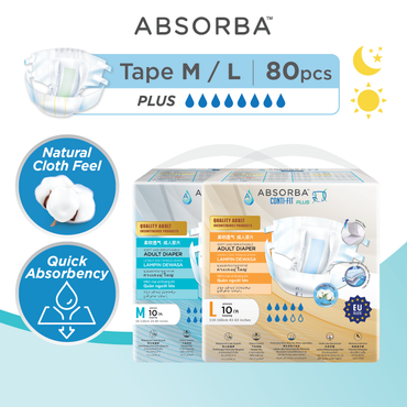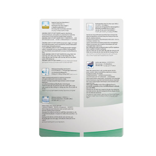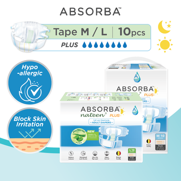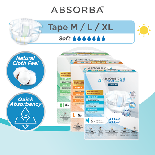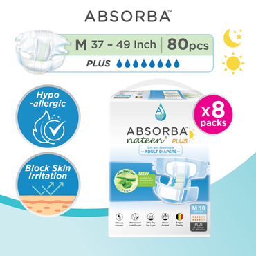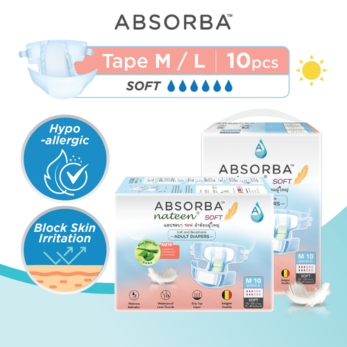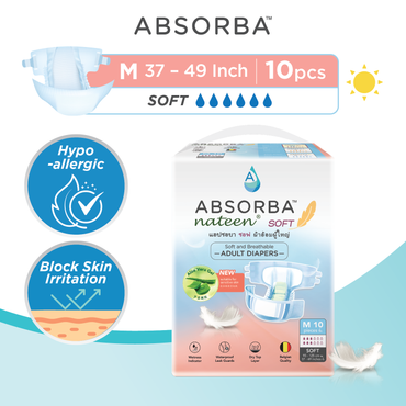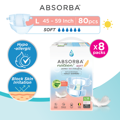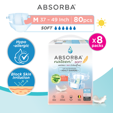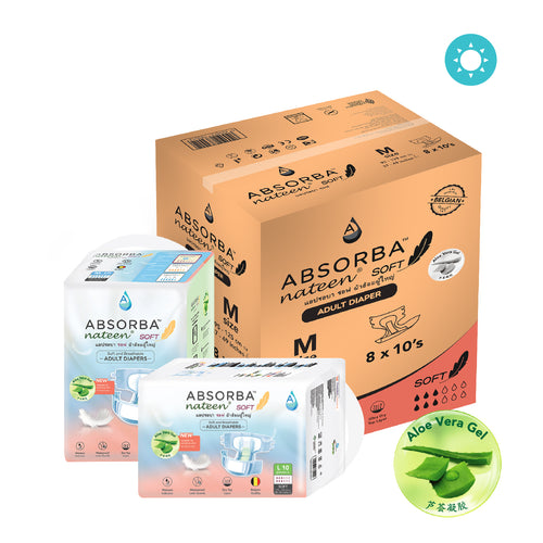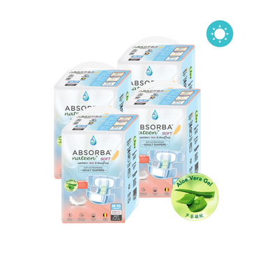 ABSORBA Nateen (Soft) Adult Diapers feature Aloe Vera Gel for optimum comfort and are well-designed for maximum incontinence protection. Constructed with porous materials, and waterproofing leak...