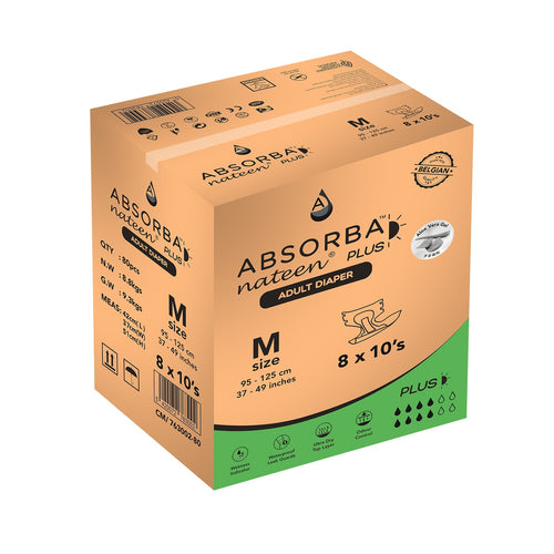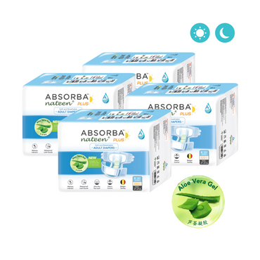 Absorba Nateen Plus Adult Diapers feature aloe vera gel and leakage protection to provide top-quality comfort. Country of Origin: Belgium