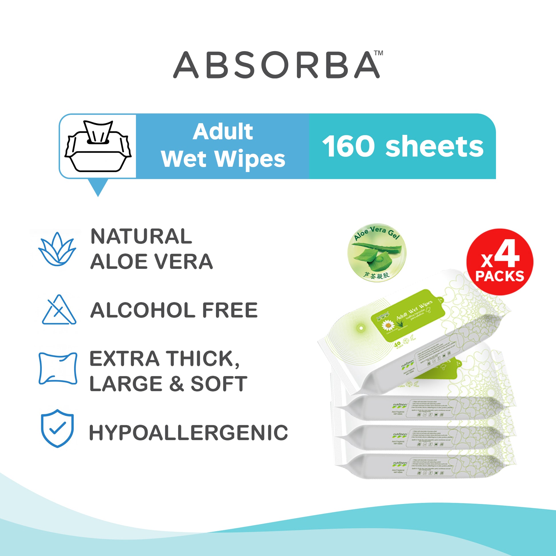 The Absorba Nateen Wet Wipes were created with incontinence in mind, as well as overall body and cosmetic wipes. For sensitive skin, these extra-large disposable hypoallergenic wipes include natural aloe vera