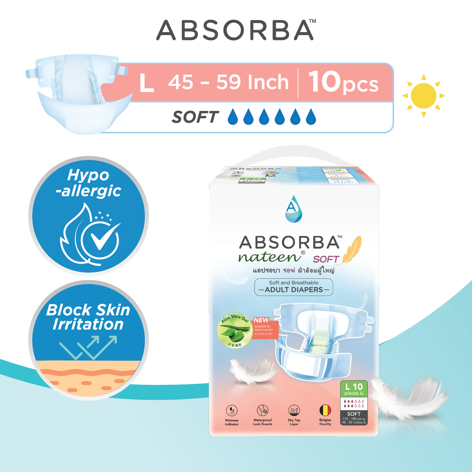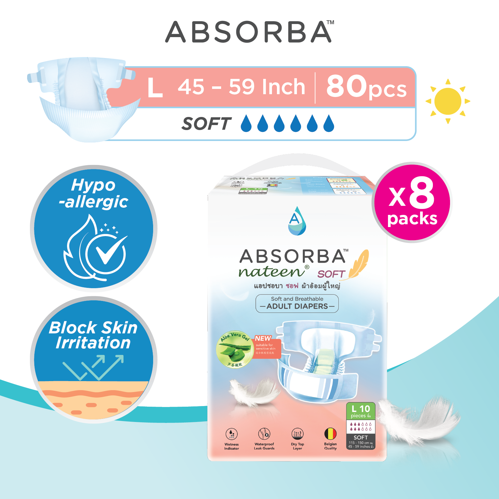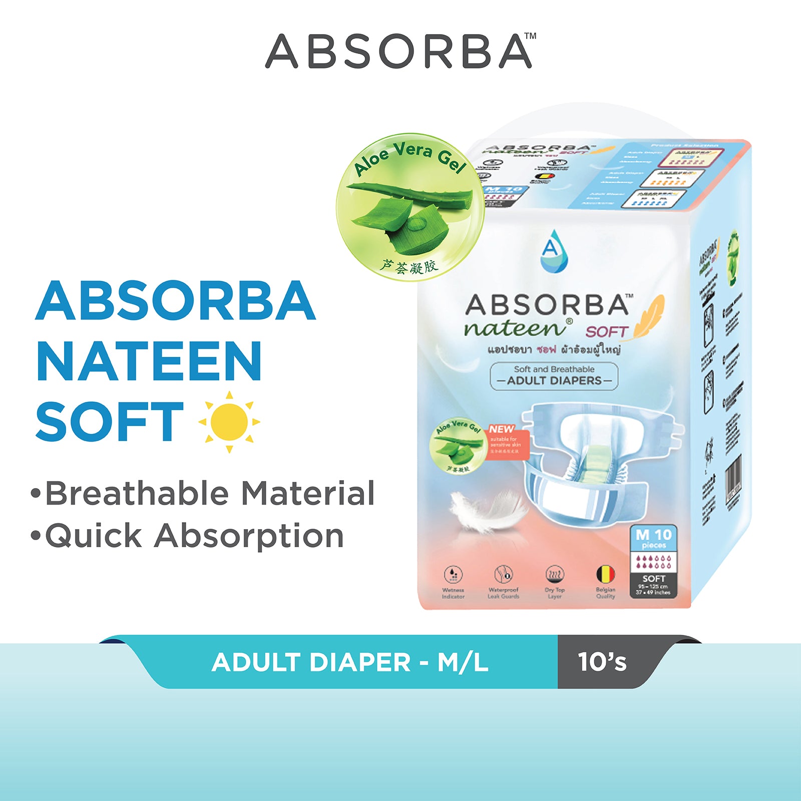 Absorba Nateen Adult Diapers are premium Belgium-Quality incontinent diapers that provides you with multi-functional features and high absorbency performance.